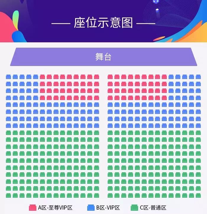 不同价位门票,分别对应不同位置区域,具体座位根据票务类型和购买时间进行排序