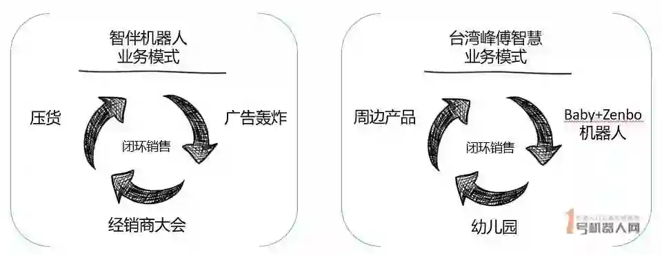 如智伴业务模式:广告轰炸——经销商大会——压货;如峰傅智慧业务模式:Baby+Zenbo机器人——幼儿园——周边产品;等等至少会分三步骤去构建一个循环。我们可以理解为业务一、业务二、业务三,这三大业务相互之间是有连接的,可相互迭加影响力。如果三者之间是没有联系的,或者是毫无相关的业务,那基本上是不会有作用的。
