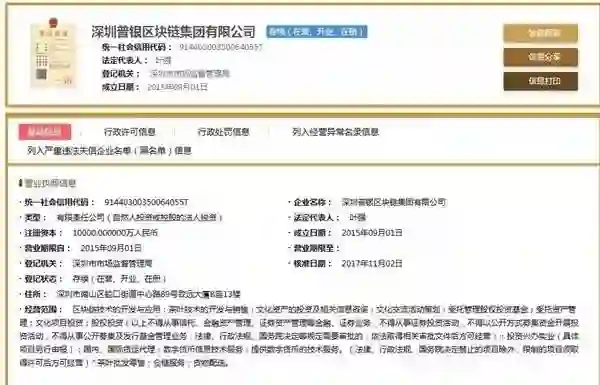工商信息显示,普银公司成立于2015年,法定代表人是叶强,经营范围主要包括区块链技术的开发与应用、茶叶技术的开发与销售等。