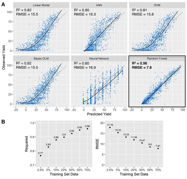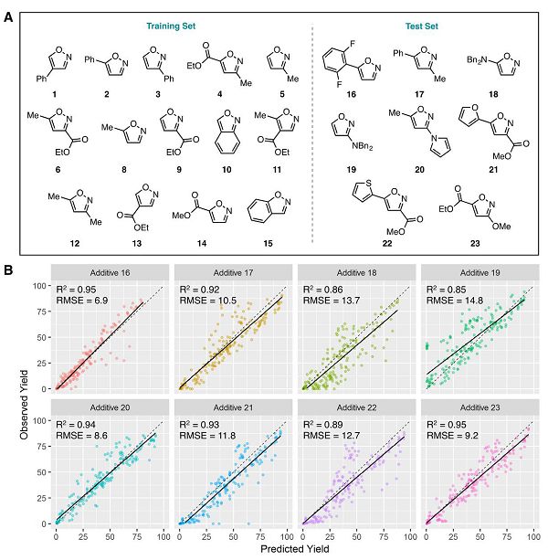 Science在线发表了普林斯顿大学Abigail G. Doyle、Merck Sharp & Dohme公司Spencer D. Dreher(共同通讯)等人题为“Predicting reaction performance in C–N cross-coupling using machine learning”的文章,团队证明了机器学习可以用来预测多维化学空间中合成反应的性能,使用通过高通量实验获得的数据。通过创建脚本来计算和提取原子,分子和振动描述符,用于钯催化的Buchwald-Hartwig芳基卤化物与4-甲基苯胺在各种潜在抑制添加剂存在下的交叉偶联反应。使用这些描述符作为输入和反应产量作为输出,表明随机森林算法提供了比线性回归分析显著改进的预测性能。