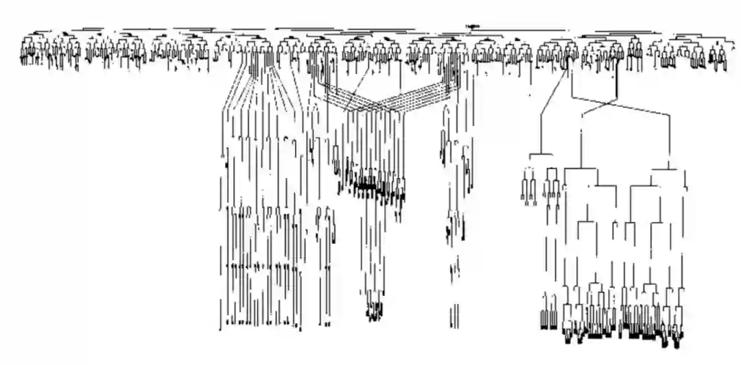 可以说,发育生物学的全部问题,就是绘制和注释这棵细胞谱系树。布伦纳早有做线虫的细胞谱系树的想法。不过,当时大家都认为线虫在孵化之后就停止发育了,研究的重点一直在胚胎产生到孵化前的阶段。但观察这一阶段的细胞谱系极其困难。原因是在胚胎发育早期,大量细胞会发生重排,这让细胞追踪起来极具挑战。当线虫孵化之后,定位细胞就容易得多了。然而,孵化之后的线虫观察起来也有其他的困难:线虫会到处爬。最后苏尔斯顿采用了一个巧妙的办法:在视野的中心放置一盘美味的大肠杆菌。这样线虫就会在视野的中央缓缓蠕动,观察就变得容易多了。大约在苏尔斯顿研究出怎样观察线虫孵化后的发育的同时,另一位日后获得诺贝尔奖的科学家罗伯特·霍维茨(Robert Horvitz),加入了布伦纳实验室。两人通力合作,共同把线虫孵化后的发育树绘制了出来,论文发表在Developmental Biology杂志上(影响因子:2.944)。发表的时候还有一件趣事:两人据说争当第二作者,都想把credit给对方。最后是霍维茨争赢了:他知道苏尔斯顿并不喜欢写作,于是提出自己来写文章,苏尔斯顿由此被列为第一作者。这之后,两人分别转向了不同的方向:霍维茨转而研究在观察细胞谱系发育过程中发现的细胞凋亡现象,而苏尔斯顿则再接再厉,和约翰·怀特(John White)、朱迪思·金布尔(Judith Kimble)等人把孵化前的细胞谱系也绘制出来了。下图就是线虫的完整细胞谱系树: