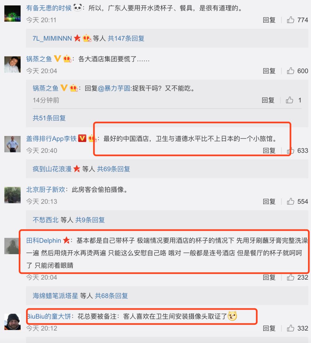 这条视频《杯子的秘密》用针孔摄像头拍摄了酒店的洗漱台和卫生间,花总说他可能是中国酒店住得最多的人,过去六年以酒店为家,入住了147间五星级酒店和精品设计酒店,超过2000个房晚,的确是以酒店为家了。