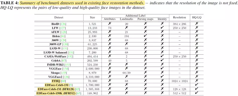 人脸复原任务相关的公开数据集以及相关统计信息总结如下: