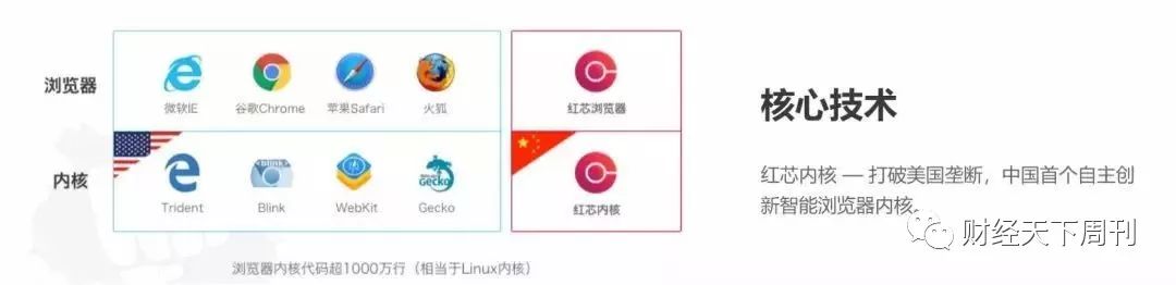 在它官网上,“打破破美国垄断,中国首个自主创新智能浏览器内核”赫然醒目。红芯内核也与Chrome的内核Blink、Safari的Webkit并列。只是浏览器的下载链接已经撤下。