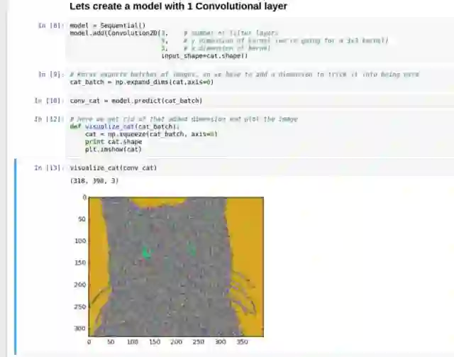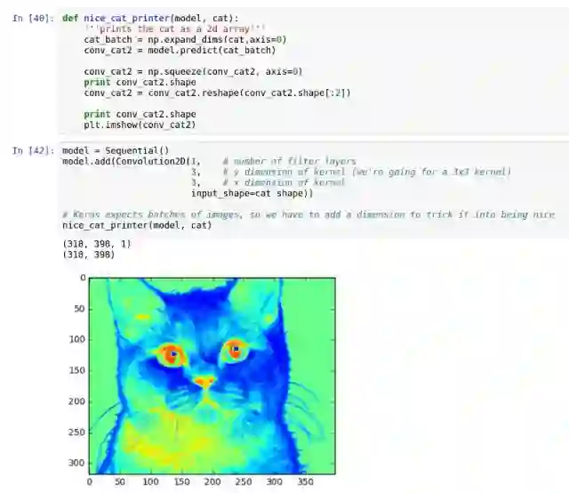 这是用一个3*3的卷积核和三个滤波器处理的效果(如果我们有超过3个的滤波器,那么我可以画出猫的2d图像。更高维的话就很难处理)