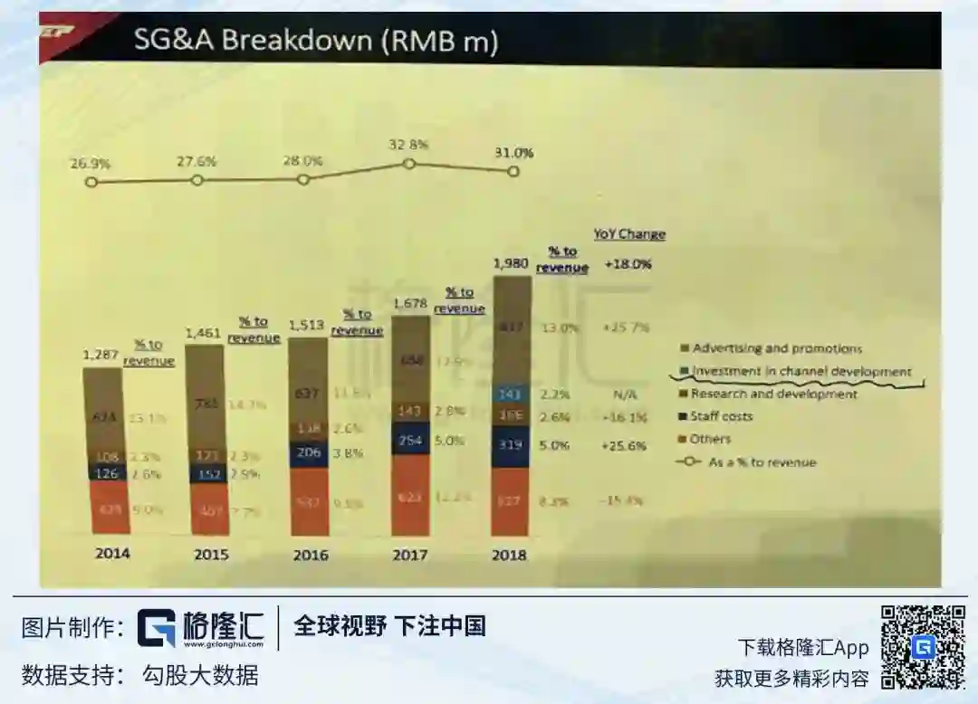 广告费用上升了,这个比例还是维持管理层的预算之内,13%以内。职工福利增加了5000万的原因是,去年业绩这么好,那么奖金肯定是要发的 ,所以就增加了。