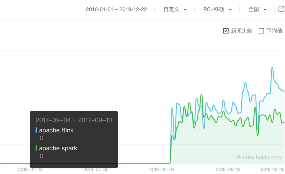 还有一点我想说的是学习 Flink 并不只是学习 Flink 本身,你还可以扩宽眼界,学习到其他的技术,交到很多志同道合的朋友。由于 Flink 本身的生态系统的强大,你可以学习到其他领域的知识,比如 IOT,云原生,AI 等等。此外 Flink 社区蓬勃发展,在国内已经积蓄了大量的学习资料和人才,Flink 的钉钉群人数已经超过了1万5千人,百度指数上的 flink 指数已经超过了 spark。在 Flink 社区,你可以从别人身上学习到很多有优秀的东西,我相信你在 Flink 社区会有多意想不到的惊喜。