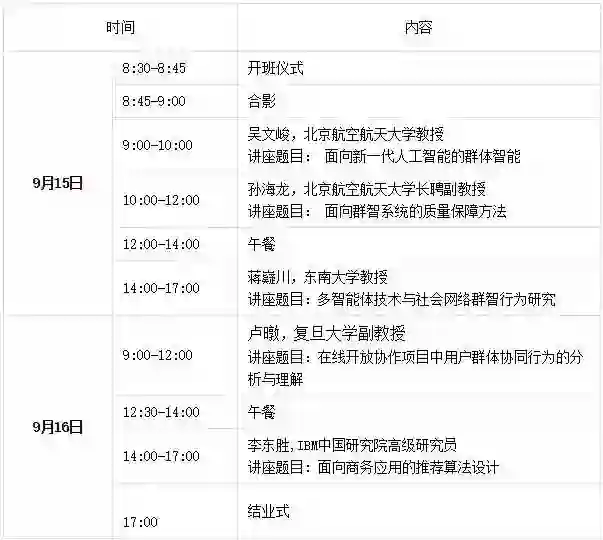中国计算机学会协同计算专委在《2016-2017中国计算机科学技术发展报告》上发表了《群智协同计算:研究进展与发展趋势》一文。在此基础上,专委组织并承办本期CCF学科前沿讲习班《群智协同计算》,特别从面向新一代人工智能的群体智能、群智系统中的质量保障、多智能体与社会网络群智行为、用户群体协同和推荐系统等方面对群智协同计算的相关理论、技术与应用进行介绍,并探讨未来发展趋势。