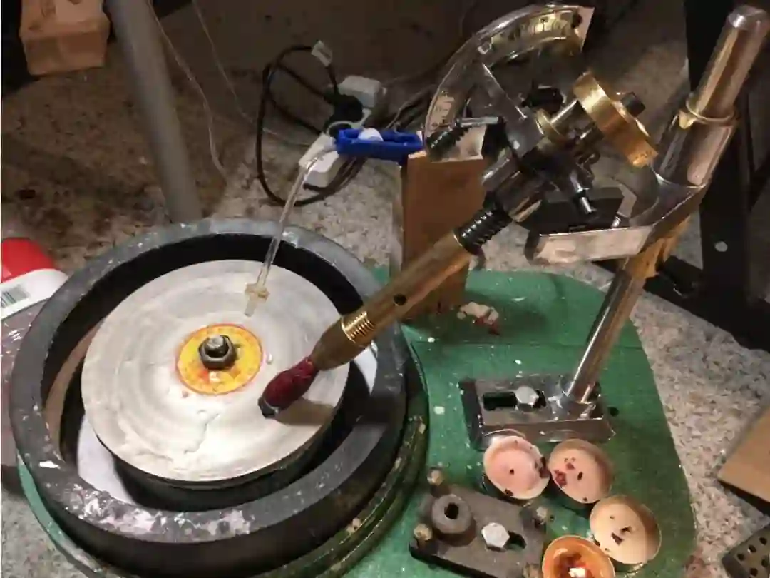 其实八心八箭在钻石的切工当中算最简单的一种,我学了三天。后来我就用这个钻和刚才炼出来的黄金,当然再加上一些我自己买的黄金,做了个钻戒送给我媳妇。