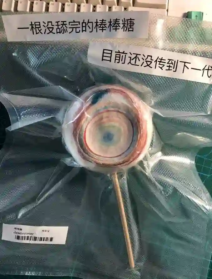 这是刚才那个棒棒糖,我准备把它留给我的孩子。