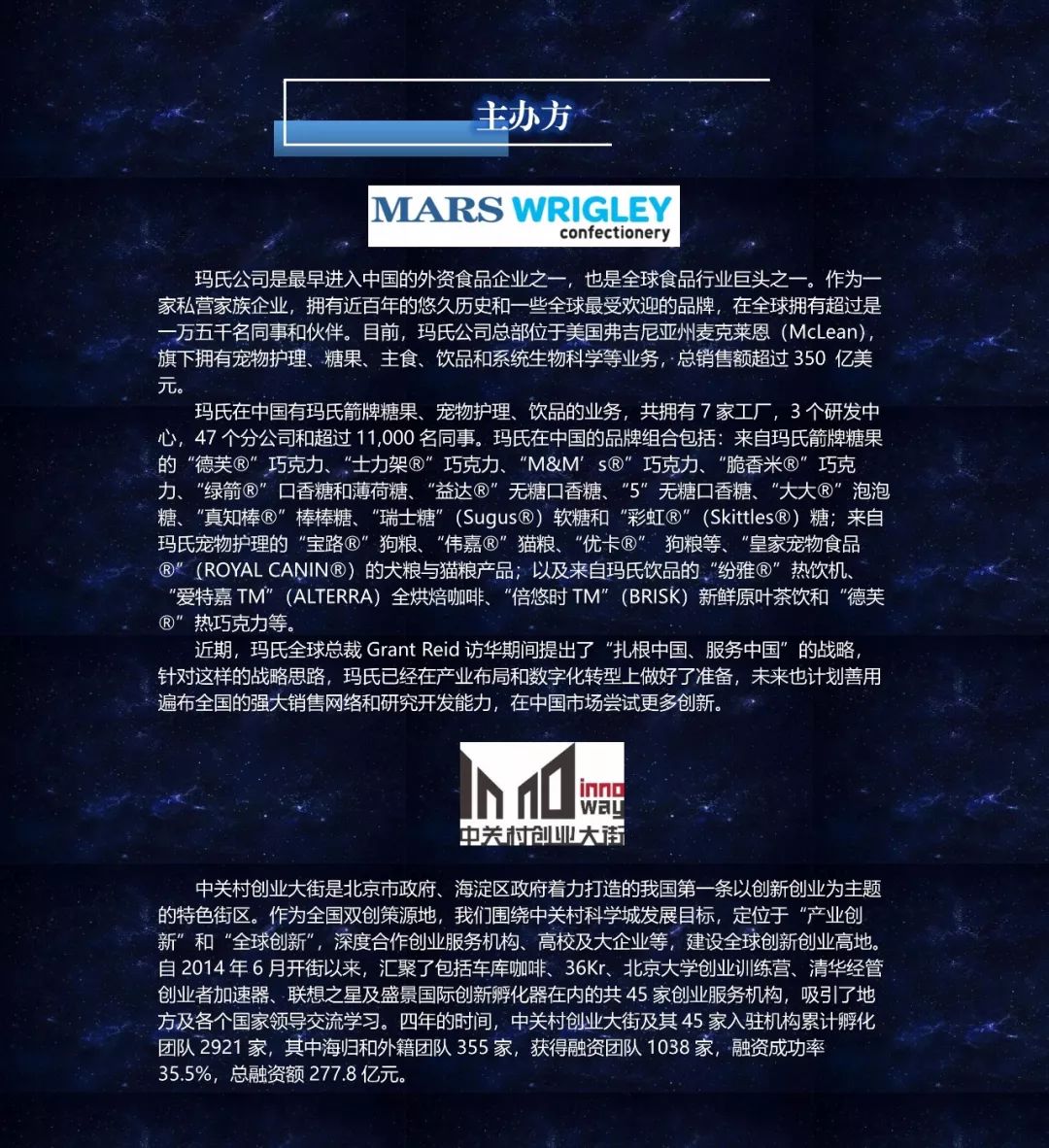 2018 年新零售的发展即将踏上另一个台阶,玛氏公司携手中关村创业大街一同为新零售变阵,聚合玛氏业务相关生态圈的各类优势资源,以开放共荣的心态邀请最有想法、最具创意的顶尖创业团队和人才,共同诊断业内疑难杂症,用颠覆的思维与创新的方案,对零售进行重新定义,打造全新业务模式及下一个创业风口。