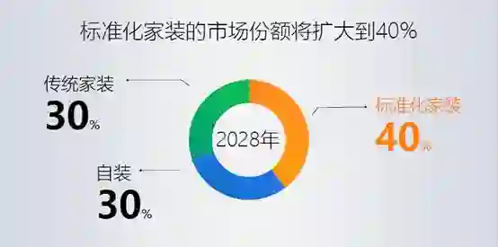 标准家装的市场份额占40%,传统家装30%,自装30%。