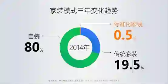 自装家装占80%,传统家装占19.5%,标准化家装只占0.5%。