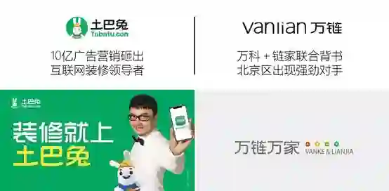 其中有两家最火的公司,一个是土巴兔,这句广告语大家一定有看过,“装修就上土巴兔”,两年里几个亿的广告投放。