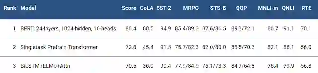 BERT在非常具有挑战性的GLUE基准测试中将最优结果提高了7.6%
