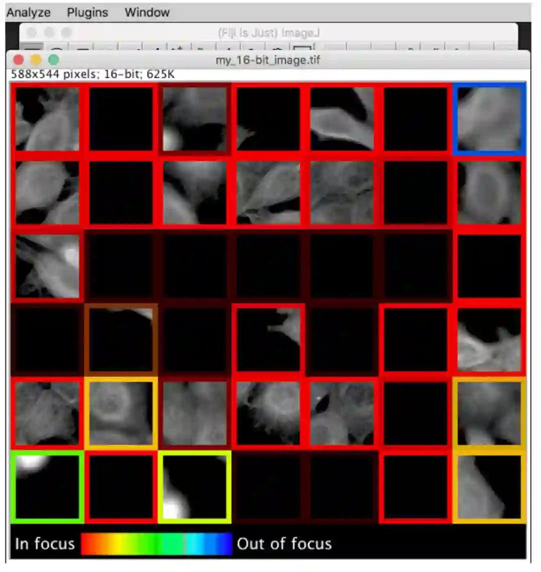经过预训练的 TensorFlow 模型可以对Fiji (ImageJ)细胞显微镜图像斑块的蒙太奇进行聚焦质量评估。