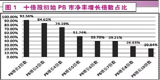 据我们十倍股研究中心统计结果,在沪深两市中,有806只个股从2000年~2013年股价涨幅超过10倍。这些初始PB(市净率)增长超过两倍的公司,占所有十倍股的92.56%。这说明一个普遍性现象,即一个完整的股价上涨过程,需要有估值的配合。
