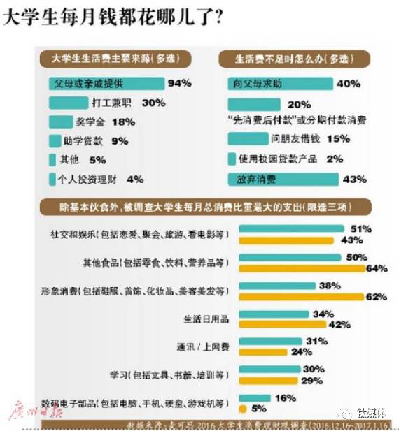 据广州日报曾做过的调查显示,当今中国94%的大学生的基本生活来源仍由家人提供,这些家人供给的资金,大多被消耗到了社交娱乐、形象消费、数码用品等领域中,真正能够投入在学习生活中的,并不如我们想象的多。而即便如此,大量的借贷需求依然得不到满足。