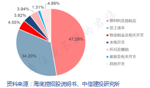 另外,原材料成本是火锅企业成本中占比最大的环节之一,直接影响单店盈亏。以海底捞的成本结构为例,占比最大的一块就是原材料,几乎接近总成本的一半。