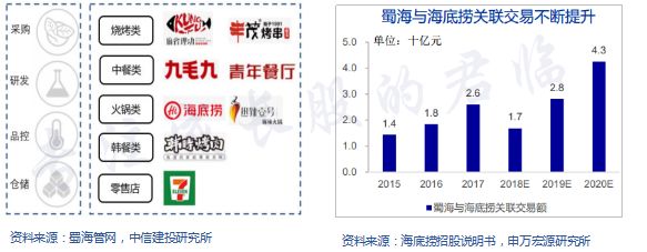 蜀海供应链成立于2011年,起初只是海底捞的食材供应部门,后来做成了开放平台。由于看好食品供应链的未来,海底捞集团早已将餐饮供应链这部分业务独立出来成立了蜀海供应链公司。