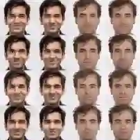 下图是使用Glow操纵两名研究人员面部图像的属性。模型在训练的时候并没有给出眼睛、年龄等属性标签,但自己学习了一个潜在空间,其中某些方向对应胡须密度,年龄,发色等属性的变化。