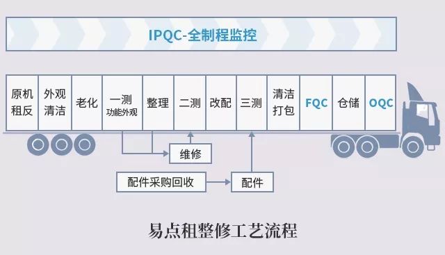 目前易点租已经在北上广深等10个城市建立了自营的服务团队,实现了4小时上门维修。其中北京五环内可以实现2小时上门。此外,公司在武汉建立了自己的整修工厂,每个月可以翻新约2万台设备。
