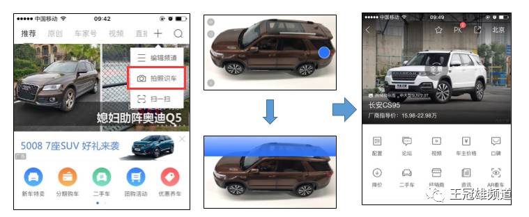 然而,人工智能、虚拟现实、大数据等技术的勃发,则为线上汽车电商尽最大可能构筑虚拟现实化的4S场景提供了可能。譬如,在国庆期间小试牛刀的“拍照识车”功能,就是汽车之家用视觉图像识别技术打造而来的,其不仅能识别汽车外观、内饰,而且连汽车后视镜、汽车图片、视频片段等,都能精准识别出来,而且立即可以呈现出一大波车型介绍、车友评论、4S店优惠购买渠道等信息。而在本次双11的“超级品牌日”期间,“拍照识车”就成为汽车之家玩转双十一的一大神器,也为双十一期间的人与车的连接提供了技术助力。