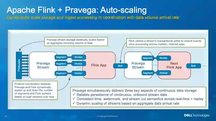 也就是在 Pulsar 开发的同时,戴尔科技集团的研发团队发现做一个更好的消息队列 /Kafka 并不能解决新一代大数据平台在数据存储层上的挑战,因此他们重新思考了数据处理和存储的规则,设计并开源了全新流存储”Pravega”项目(https://github.com/pravega)。通过一个全新的“stream”存储抽象层,Pravega 让上层计算引擎能更好和无缝去跟底层存储解耦:“所有计算机领域的问题,都可以通过增加一个额外的中间层抽象解决”。
