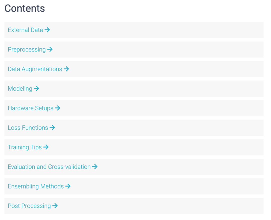 一个经历了 39 场 Kaggle 比赛的团队在 reddit 上发帖表示,他们整理了一份结构化的图像分割技巧列表,涵盖数据增强、建模、损失函数、训练技巧等多个方面,不失为一份可以参考的图像分割技巧资料。