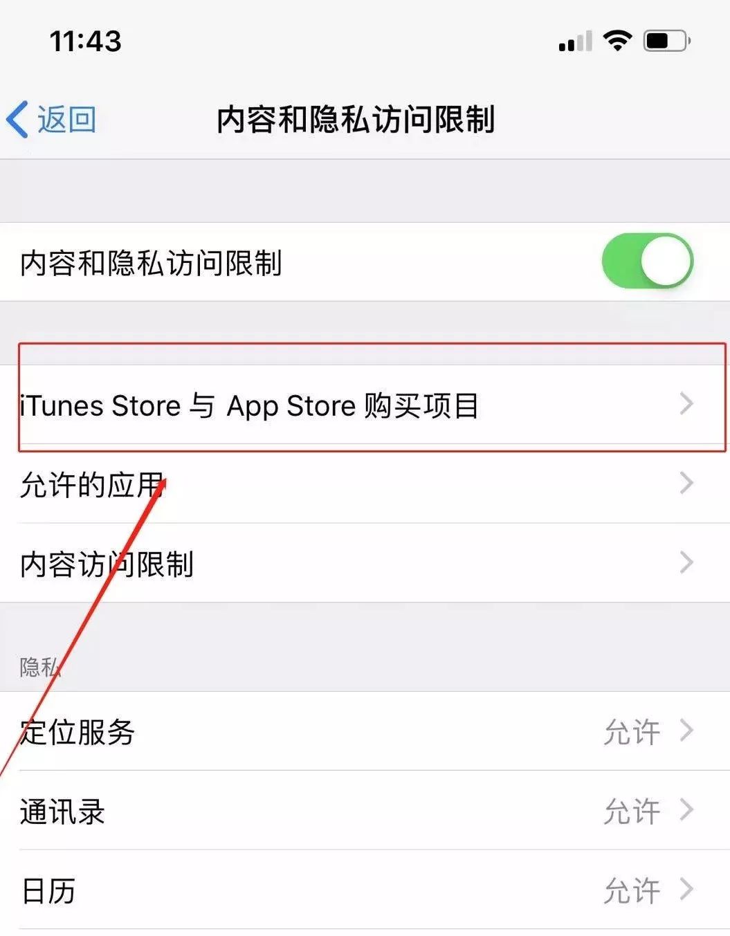 在【iTunes store和app store 】中 选择【app内购买项目】 选择不允许即可,这样子系统将自动锁定,您的手机将无法在所有app里面进行充值购买活动。