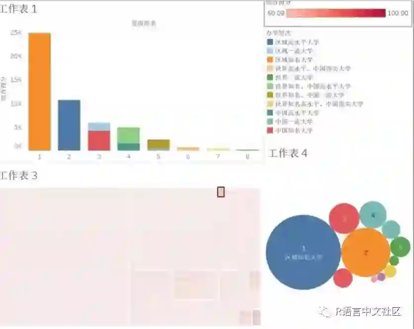 首先我使用上次Excel演示爬取数据的案例所抓取的大学排行榜数据做了一个简单仪表盘。默认的配色风格如下: