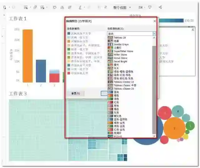 Tableau支持的颜色主题方案有连续色、分类色、二分色,详细的颜色搭配方案技巧可以参看这篇文章: