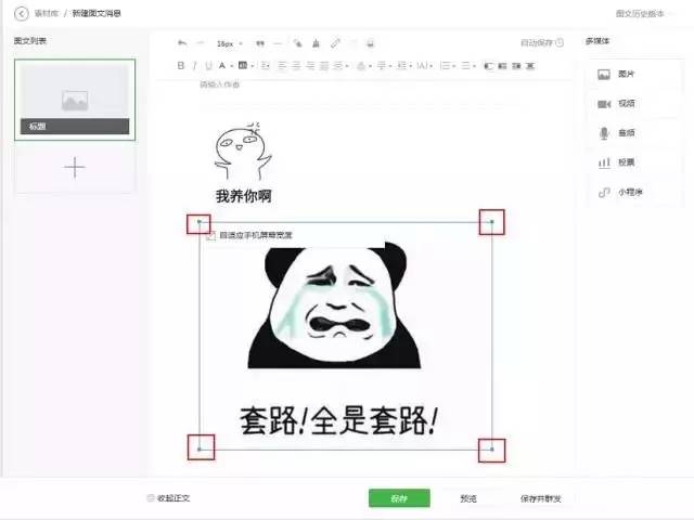 新榜讯 今天,微信编辑器又新增多个图片编辑功能:插入文章的图片可以直接等比例缩放,选择任意一点就能拉动哟;封面图可以直接剪裁,再也不怕上传完只剩半个头了;缩放后,同一行可以插入多张图片。