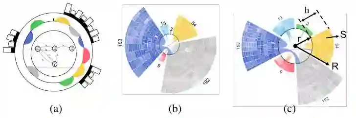 人物视图通过肖像类标志符号,将所选定目标人物的情绪状态可视化地表现出来。不同情感肖像之间的差异使得用户能够识别和比较不同人物的特征。如下图 5 所示,研究者在设计中采用了定制化的饼状图: