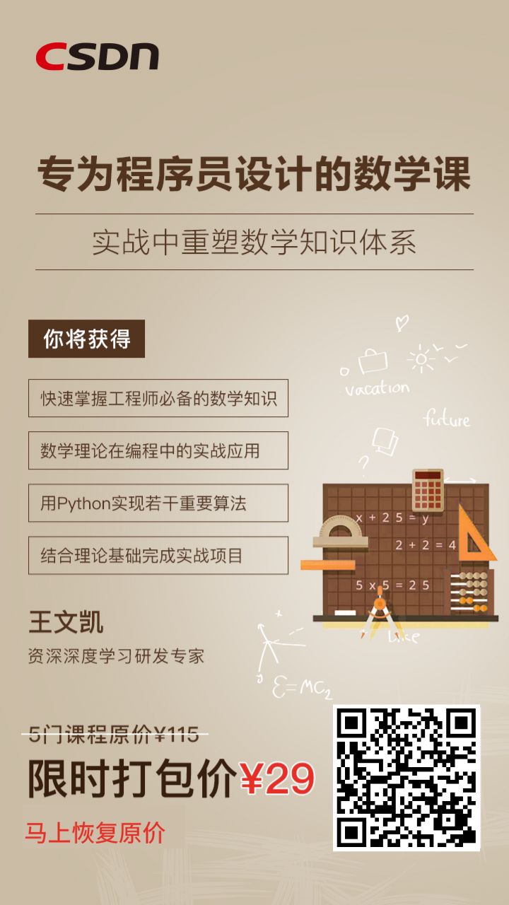 这门系列课由CSDN学院联合百度、阿里云资深深度学习讲师王云凯老师共同研发完成,期望解决你在数学上的一些问题。