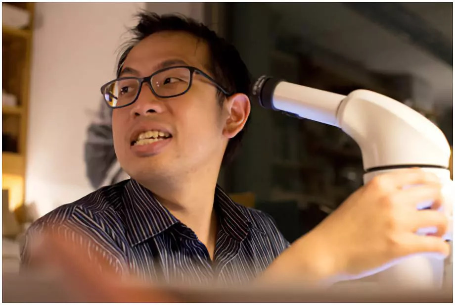 他的工作需要坐在显微镜前,左右手相互配合地对付一只只的线虫,像个专注的乐队鼓手。他的右手拿着一个装满水果味酒精的吸头靠近虫子提供气味刺激,当虫子在培养皿中蜿蜒盘旋时,这只手要小心翼翼地跟随它的移动轨迹,确保线虫能闻到味道。几秒钟后,他的脚在地板上踩下一个踏板来激活激光,将两种刺激配对。接下来,在测试线虫是否对气味形成条件反射时,李的左手食指会在线虫负责进食消化的肌肉绷紧和放松时,通过敲击键盘记录进电脑中,这是测量呕吐反射的方式。