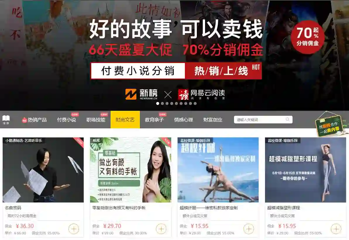 1. 注册新榜网站用户,在付费内容分销平台首页领取分销链接