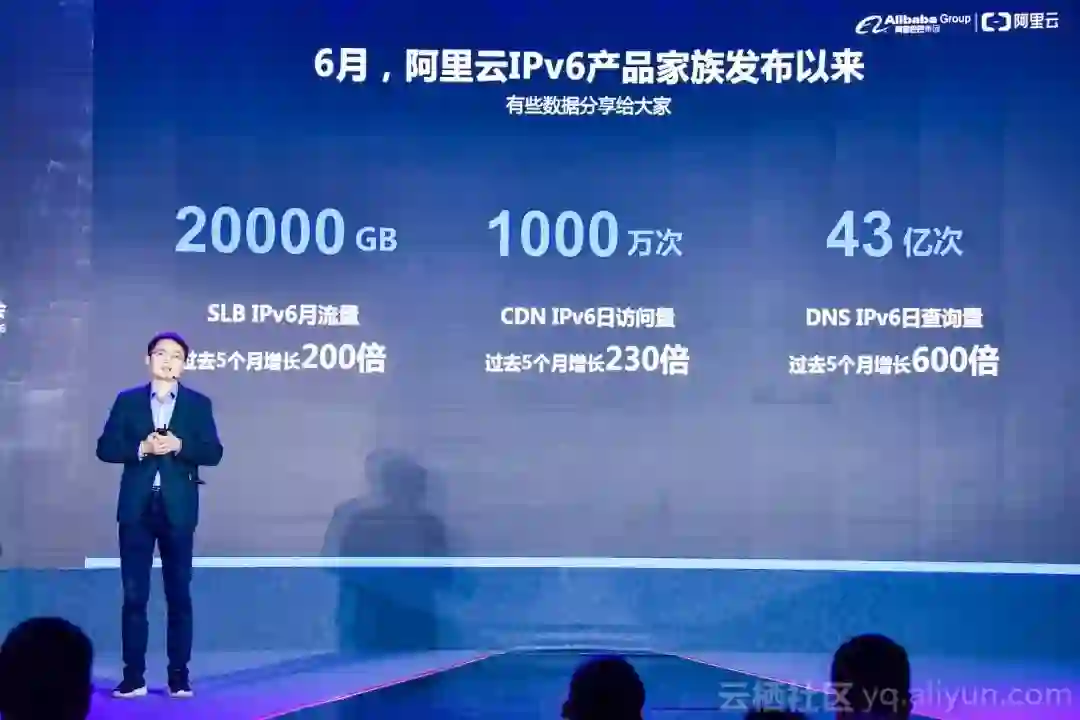 作为国内首个全面支持IPv6的云厂商,过去5个月,阿里云DNS的IPv6日查询量增长了600倍,目前,核心产品已全面支持。