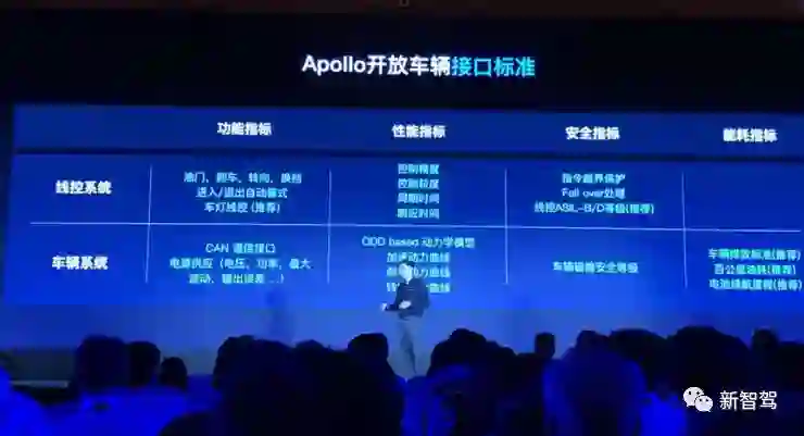Apollo 3.0 将此前的车辆参考平台升级为车辆认证平台,这块将率先和比亚迪进行紧密合作,向自动驾驶开发者开放车辆接口标准,包括功能、性能、安全和能耗指标等,当然线控系统以及车辆系统的指标也在其列。