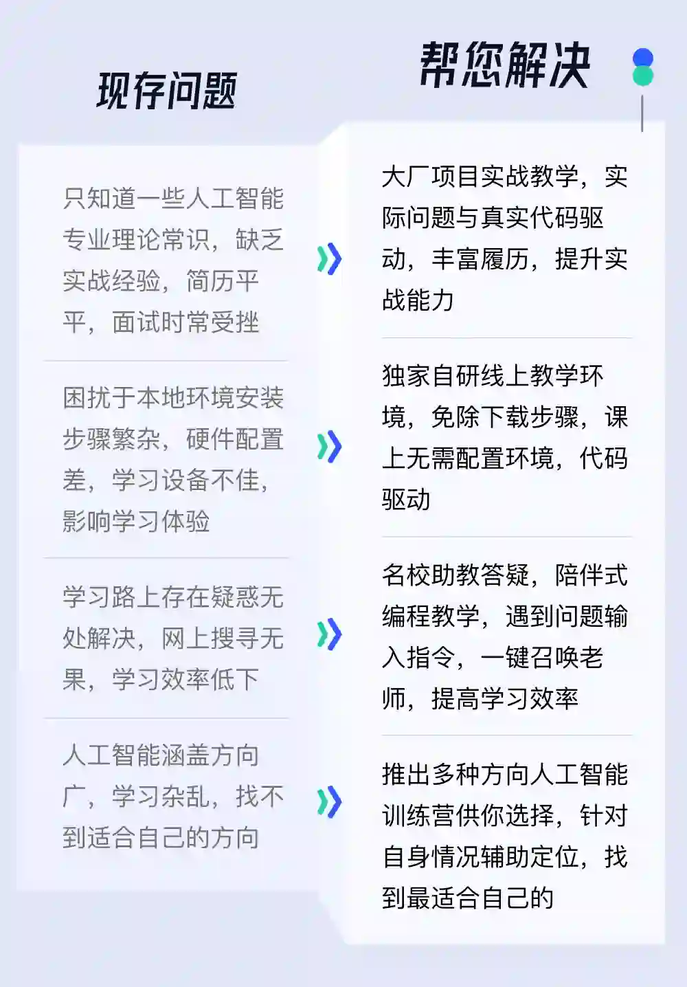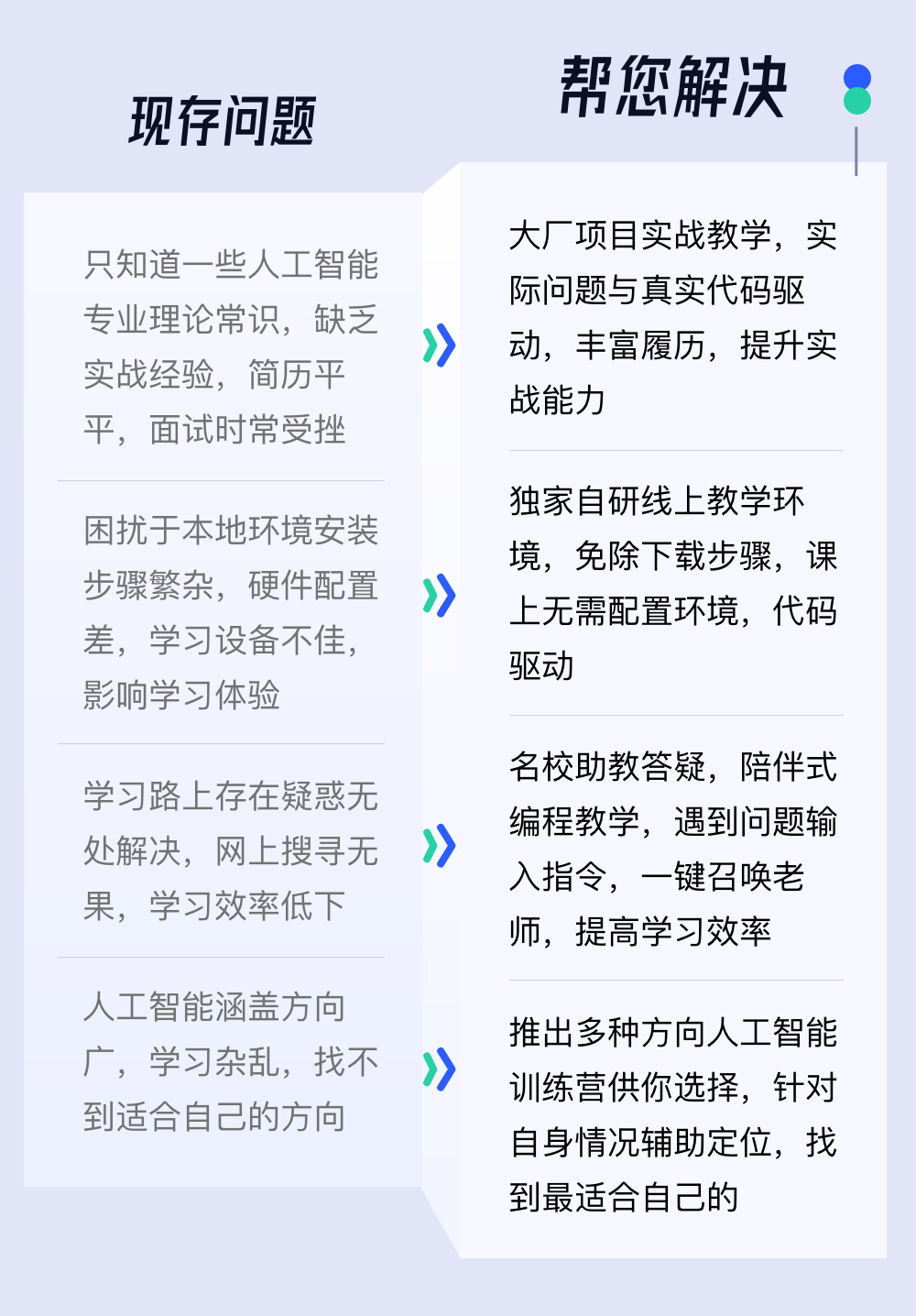在当前的就业环境下,人工智能工程师的高薪优势凸显,可却有不少人陷入了瓶颈期,不知道该朝着哪个方向发展自己,“掌握理论知识但缺乏实战经验”成为了求职晋升路上的短板,硬件设备的不足和自主学习的惰性也成为了前进路上的绊脚石。