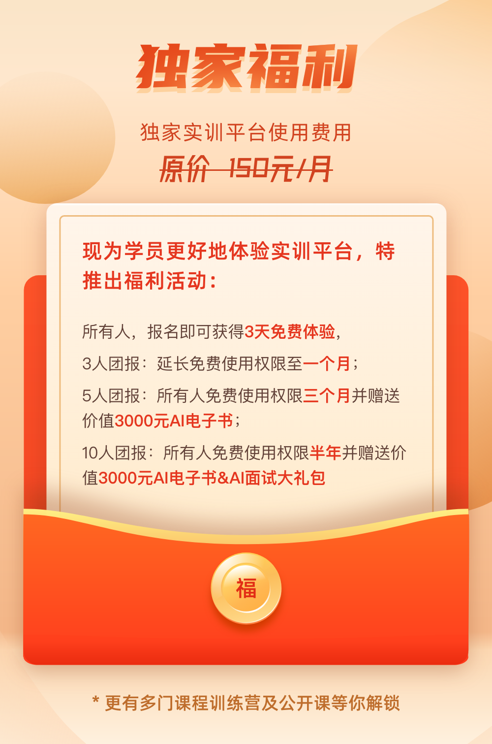 如果你属于急需短时间内提升技能和掌握实训的人群,那么这次训练营十分适合你。从原理到实操掌握,让你业务实战能力up!快速实现升职加薪!