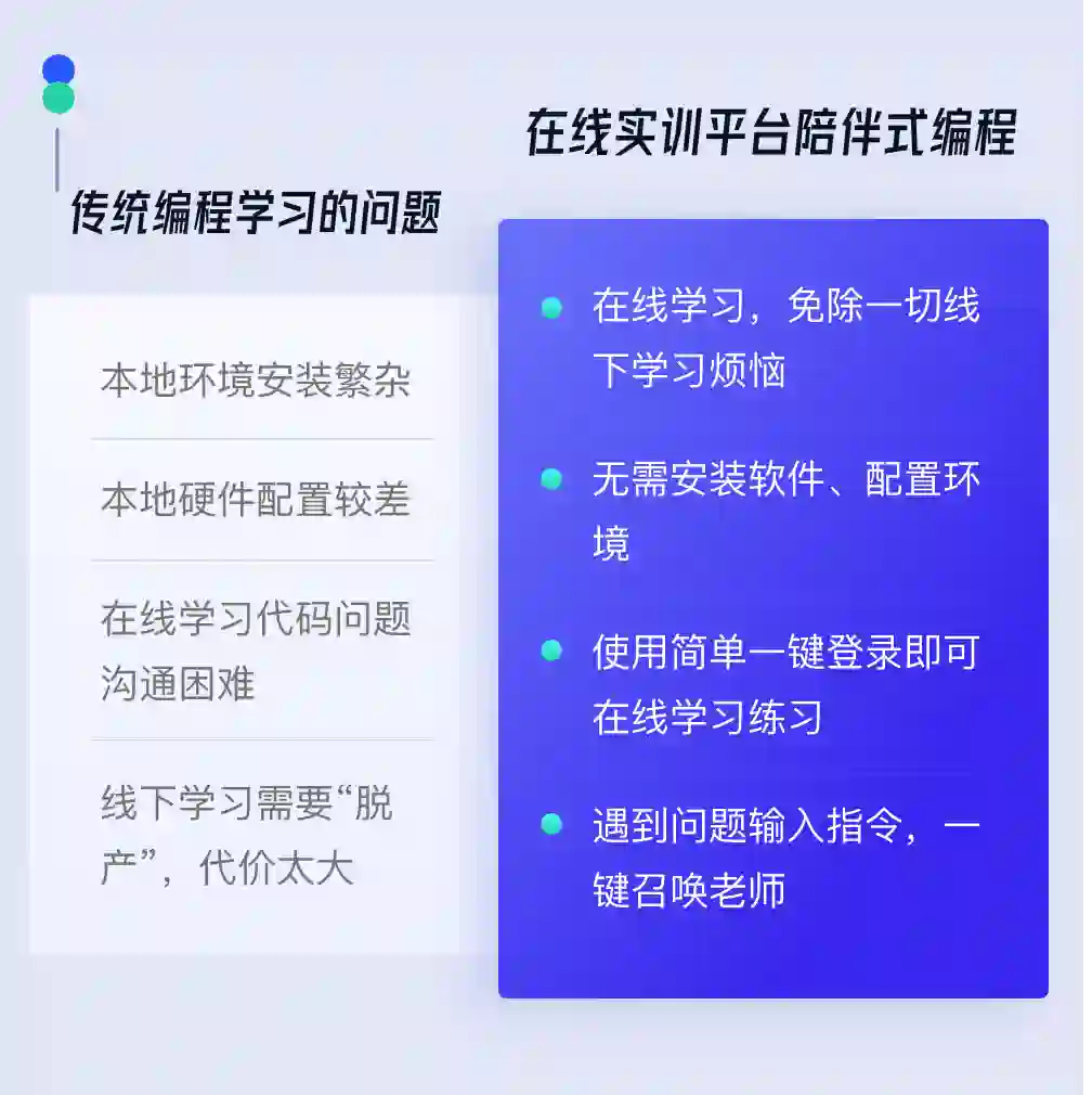 独家自研线上教学环境,免除学员上课前下载步骤,课上无需配置环境,代码驱动,可以实时跟随老师的授课思路。同时能够在线进行编辑运行,随学随用。