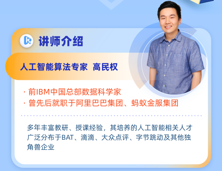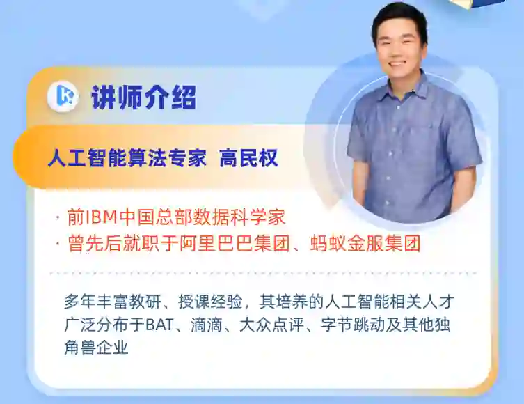 本课程的老师,均来自国际名校(清华大学、佛罗里达大学、浙江大学等)且均具备世界知名企业(阿里巴巴、商汤科技、IBM中国实验室等)的实际工作经验。