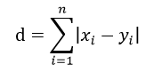 有x=[1,1,0,1] 和 y=[1,0,1,0] 两个向量,对应的 Python距离距离计算方式为: