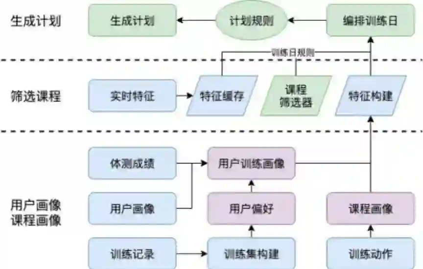 目前,智能训练计划功能已经可以通过对用户运动能力的预测,包括用户主观的“自我评估”和客观的“运动能力测试”,结合智能算法针对性地给用户推导计算出适合他的运动方案。而且其课程自动生成系统也能够自动地从动作生成一个课程,并根据动作的性别、难度、肌肉点、姿态、容量、休息时长等特征,制定了一系列的课程生成规则,通过规则生成、筛选出符合逻辑的训练课程。