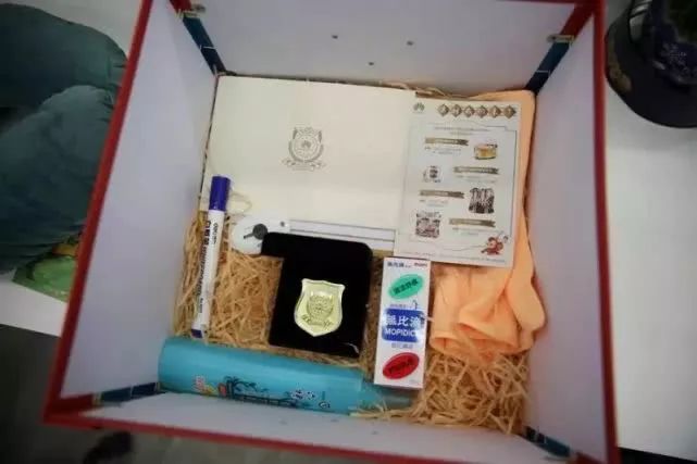 这个大大的盒子打开,里面的礼物可谓贴心:欢迎信、巴黎组团纪念章、白板笔、无比滴&six god驱蚊花露水、拆箱小刀、还有一块抹布!
