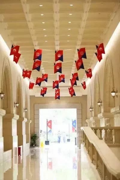 上午就看到宽敞的大堂里,不少俊美靓丽的小哥哥小姐姐在忙忙碌碌地布置场地,主元素依然是蓝白红。
