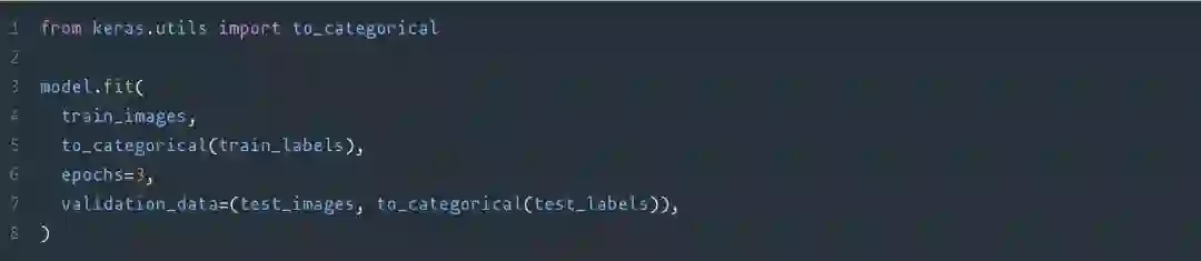 有一件事我们必须小心:Keras 期望训练目标是 10 维向量,因为我们的 Softmax 输出层中有 10 个节点。现在,我们的 train_labels 和 test_labels 数组包含表示每个图像的类的单个整数:
