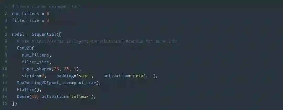 num_filters, filter_size 和 pool_size 是设置 CNN 超参数的自解释变量。