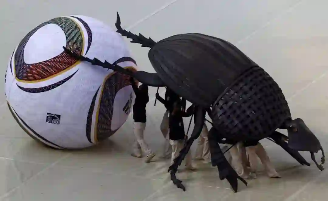 在非洲,蜣螂在埃及之外的地区也深受欢迎。在2010年南非世界杯的开幕式上,那只推着足球、吸引了无数目光的虫子就是蜣螂。人们难得见到昆虫形象在大型体育盛事上华丽登场 | the globe and mail